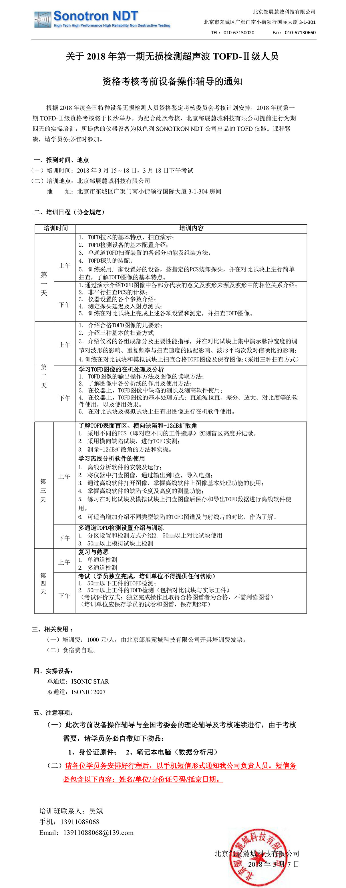 關于2018年舉辦超聲相控陣實操技能培訓班通知
